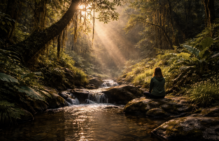 En esta capa, la naturaleza no se presenta solo como espejo ni únicamente como refugio, sino como relación viva que responde, limita y co-regula. El bosque que obliga a ralentizar el paso, el río que no puede cruzarse sin atender a su fuerza, la selva que exige escucha constante: todos ellos introducen un límite relacional que desarma la fantasía de control y autosuficiencia.